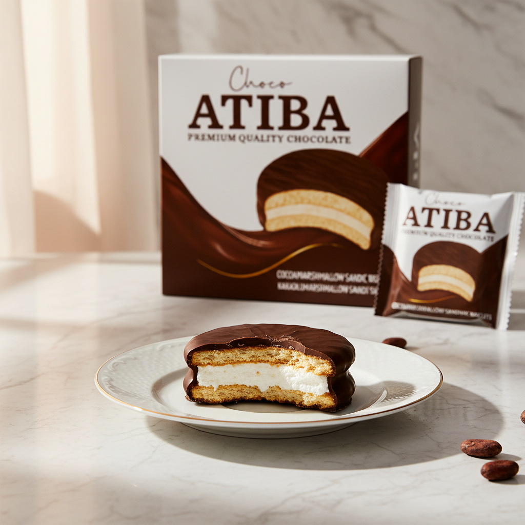 Galleta suave rellena de malvavisco y cubierta con chocolate premium. Un bocado dulce y esponjoso con textura cremosa y acabado indulgente.